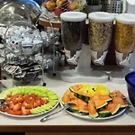 Morgenmaden var frisklavet og rimelig med varme retter og personalet var venligt. Jeg fik et meget stort og kæmpestort værelse med en dobbeltseng samt smuk udsigt. Lokalets beliggenhed var central. Meget god service inden for 5 km fra lufthavnen.